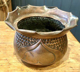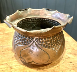Description: Superb Quality and highly desirable Arts and Crafts planter holder by Townsend Ltd, dating from circa 1900s. The pot is made from copper with lovely heart and hand beaten design. Charming item that is highly practical and would make a stylish alternative for storage,