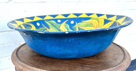 Description: Vibrant and decorative paper mache floral bowl, made around circa 1970s. Lovely colours and patterns, would make a great piece of décor, a stand out piece for a kitchen table.