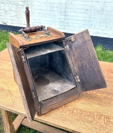 Description: Absolutely stunning and highly original Antique circa mid 1800 hundreds brass and oak coal box. The piece comes complete with original liner, fabulous brass tavern scene on the top and