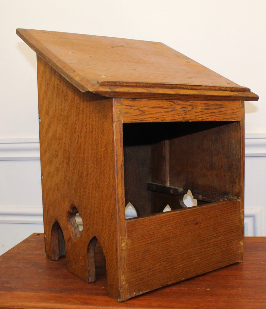 Description: Lovely early 20th century gothic oak church bible/book holder, presented to the Methodist church in Sandiacre in 1932. The stand is highly charming with