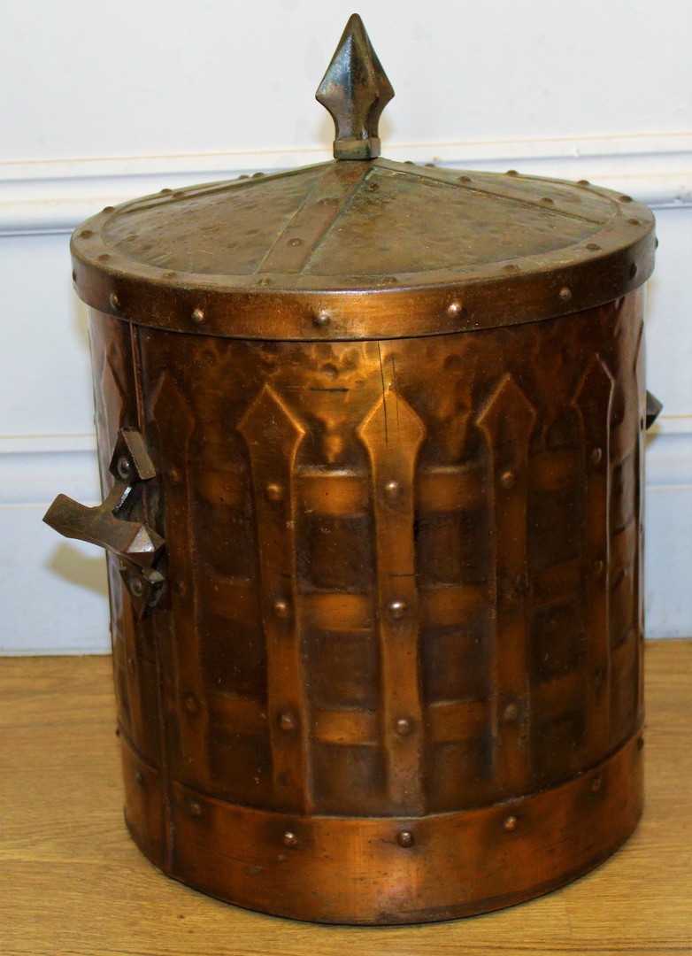 Condition: The coal scuttle is in good overall condition considering age, few small dents and marks to copper body, tarnishing to metal