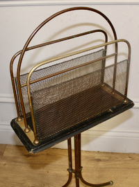 Description: Superb Quality and highly desirable Arts and Crafts magazine/letter rack, stamped SHALL. The rack comes complete with oak base, brass frame and lovely