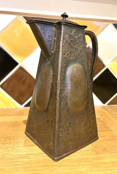 Description: Antique J & F Pool Arts & Crafts copper jug, dating from circa early 1900's. The jug has an incredibly stylish design with a hand beaten finish, period motifs to sides and brass lid, lovely stylish piece for any home