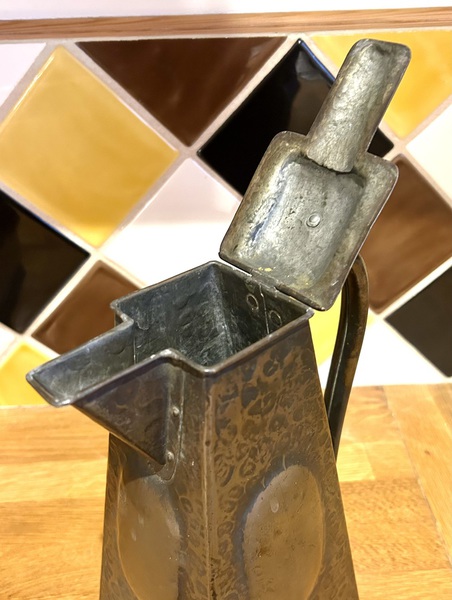 Description: Antique Christopher Dresser inspired Arts & crafts brass lidded water jug circa early 1900's, incredibly stylish design with lovely plaited seam with
