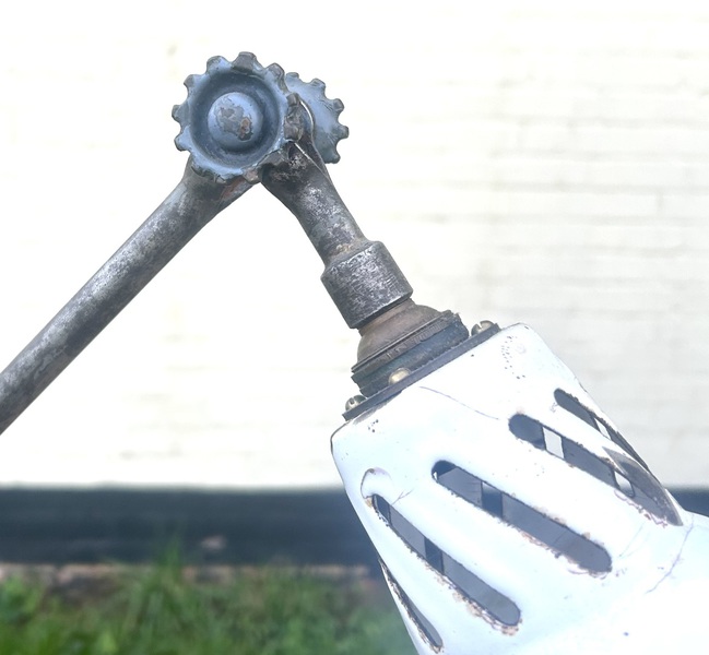 damage to cast iron base, the light has some marks and rusting but overall great patina! Brake discs slightly different.