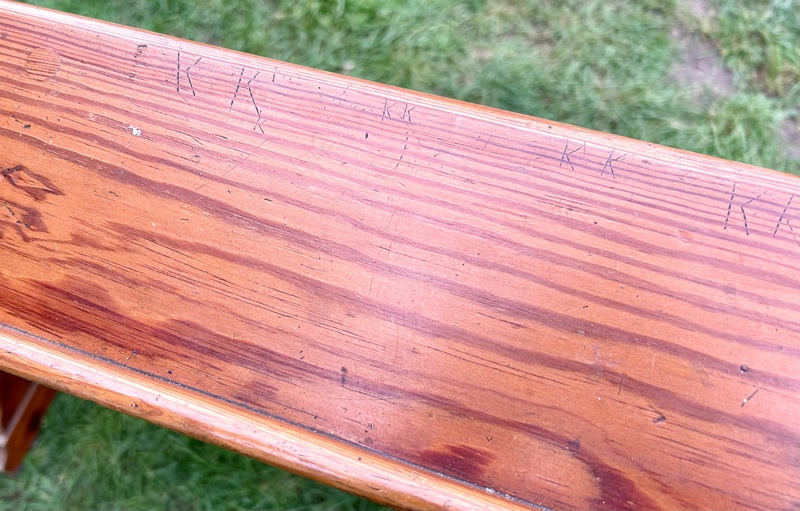 Condition : The bench is in good used condition considering age, has some marks and scratches, few graffiti marks to bible holder