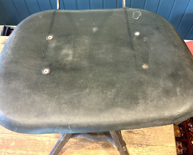 Condition : The stool is in good condition for age, the base has marks, loss of paint and wear as to be expected but this gives it amazing patina, the seat has a few marks as per pictures but very stable, the black stool has part of the feet missing on two legs, one the smaller stool is stamped Rowac