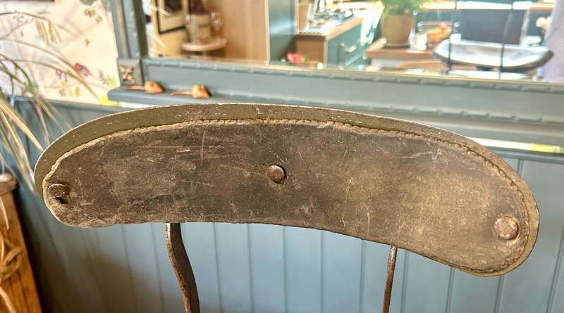 has beautiful four legged metal base with original painted finish. The chair dates from the 1940s and would add bags of character to any decor.