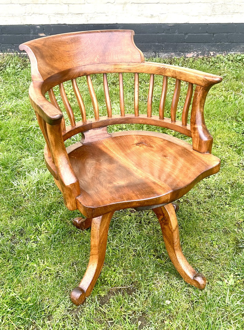 Description: Stunning and highly authentic late Victorian captains revolving desk chair, made from mahogany. The chair has lovely spindle back rest, thick curved seat and legs, the chair is of the highest standard and would stand out in any setting.