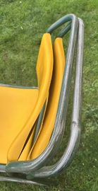 Description: Very cool and trendy 1960s adult stacking chairs produced by Du-al England. The seats are made out of thick yellow fibre glass with tubular green steel metal frames. The chairs are highly practical seating that can be stacked to save space, perfect for rustic kitchens to vintage restaurants.