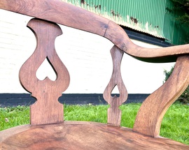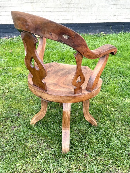 Description: Stunning and highly authentic late Victorian captains revolving desk chair, made from walnut. The chair has lovely carved backrest with heart motifs and curved seat and legs, the chair is of the highest standard and would stand out in any setting.