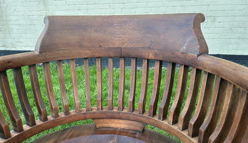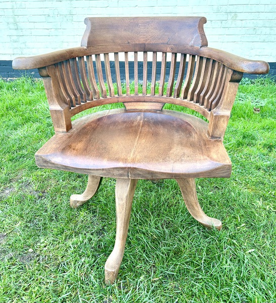 Description: Stunning and highly authentic Edwardian captains revolving desk chair, made from oak. The chair has lovely spindle back rest, thick curved seat and legs, the chair is of the highest standard and would stand out in any setting.