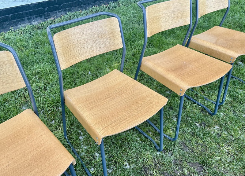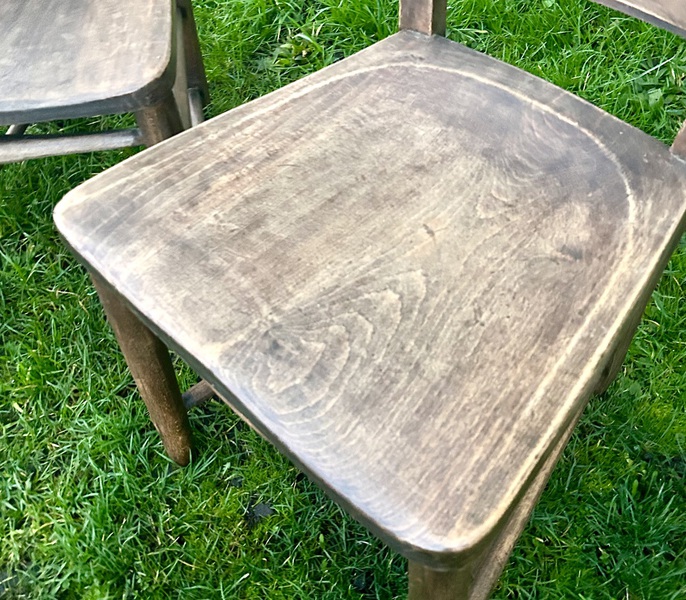 Condition : The chairs are in nice used condition with ALL sturdy and usable. Some marks and general wear to frames, the seats have lost some original finish and have some scratches,