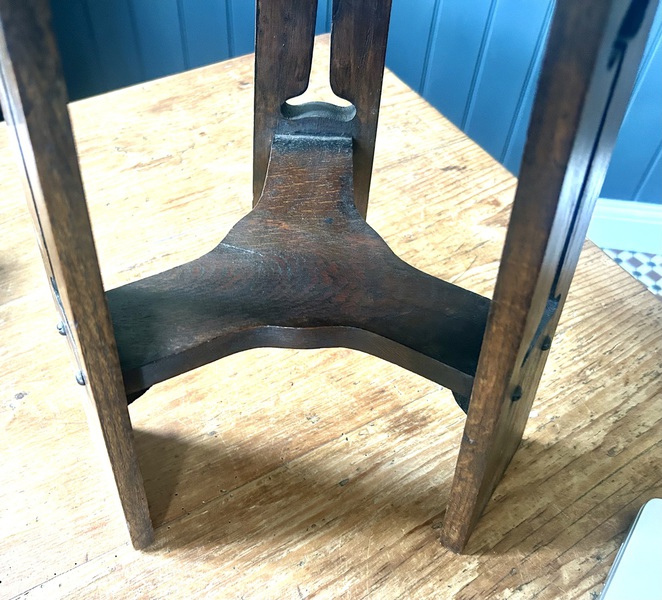 Description: Stunning and stylish early 20th century Arts and Crafts oak side table. The table has lovely period features including wonderful golden oak grain, square top & tiered feet, a charming and quaint table with fantastic details, ideal for many settings.