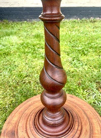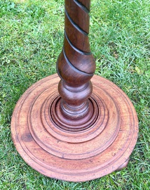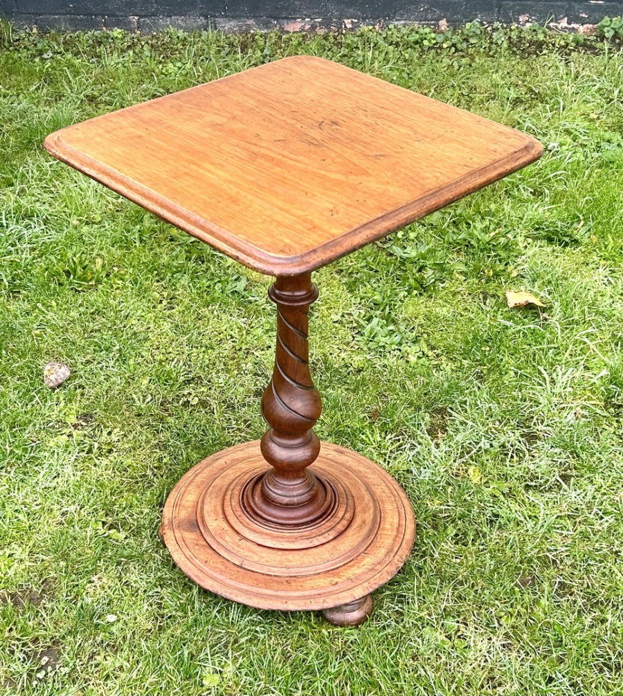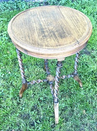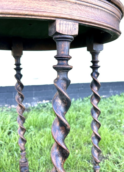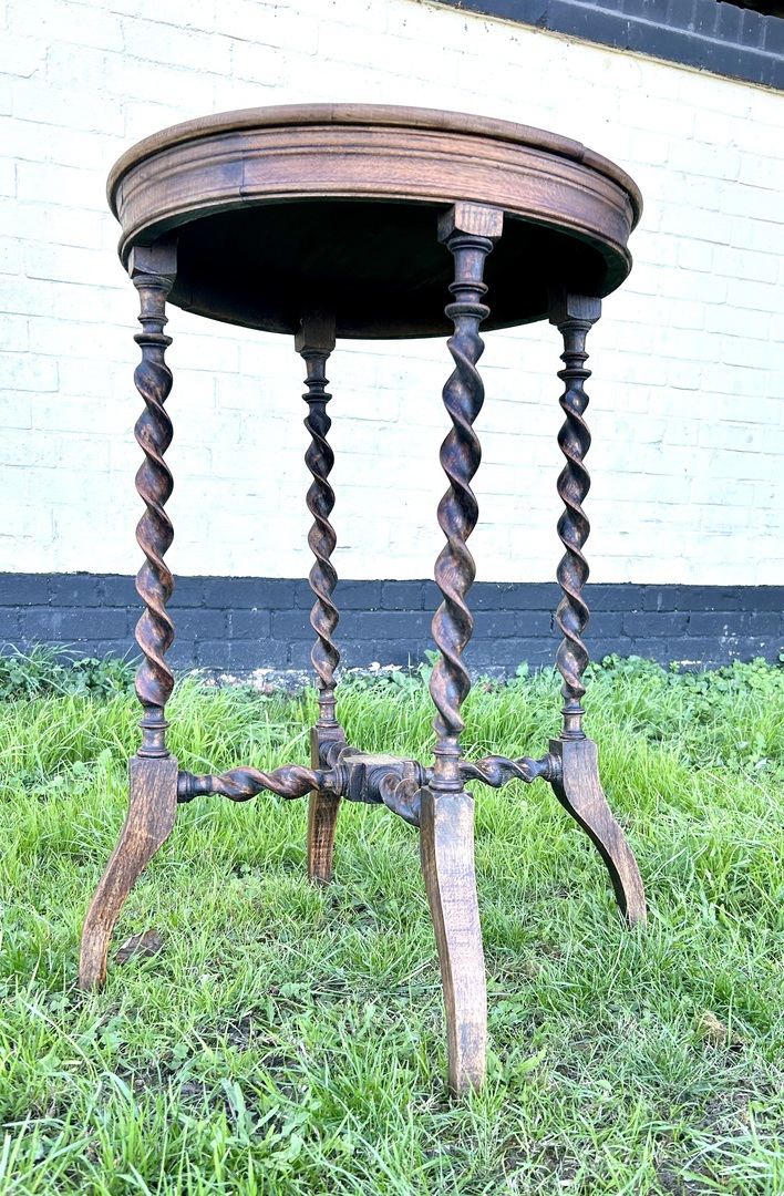 Description: Stunning and highly desirable late 19th century Victorian oak side table. The table has beautiful barley twist legs and stretchers, turned feet and circular top, a charming and quaint table with fantastic details, ideal for many settings.