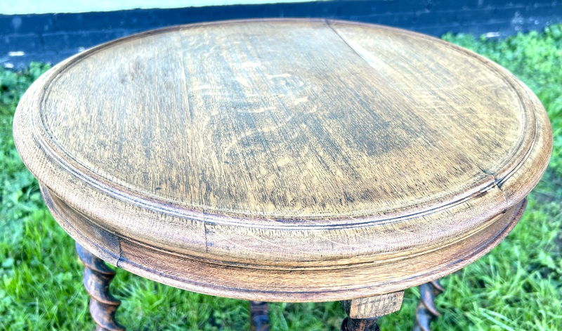 Description: Stunning and highly desirable late Edwardian large tea table. The table has beautiful twisted legs, drop leaf design and lovely golden oak grain, a charming and quaint table with fantastic details, ideal for many settings.
