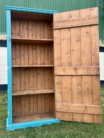 Description: Fantastic and highly original Victorian blue painted pine large country cupboard with four shelves. Charming item that is highly practical and would make a stylish alternative for storage.